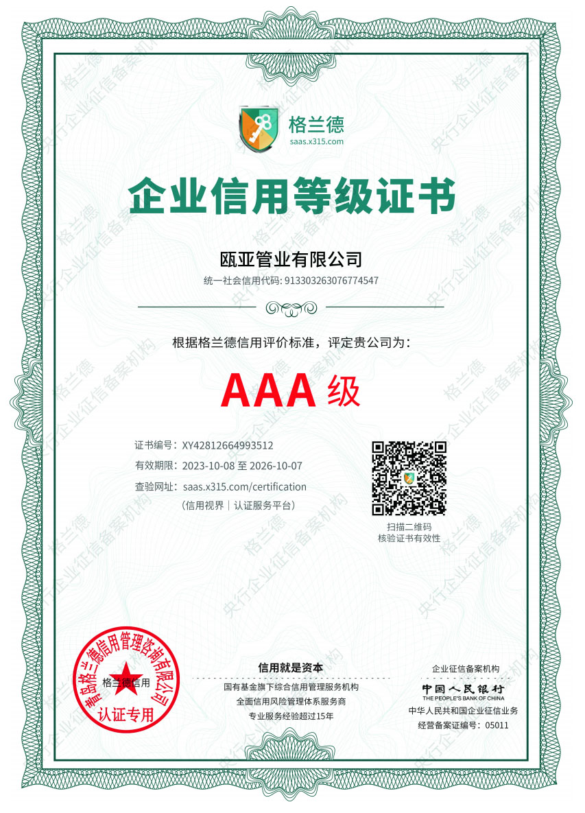 企業信用等級證書