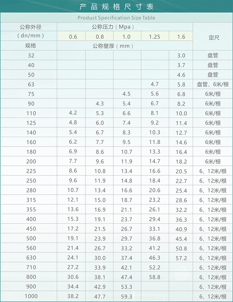 管材執行標準:GB/T13663.1-2005《給水用聚乙烯(PE)管材》。